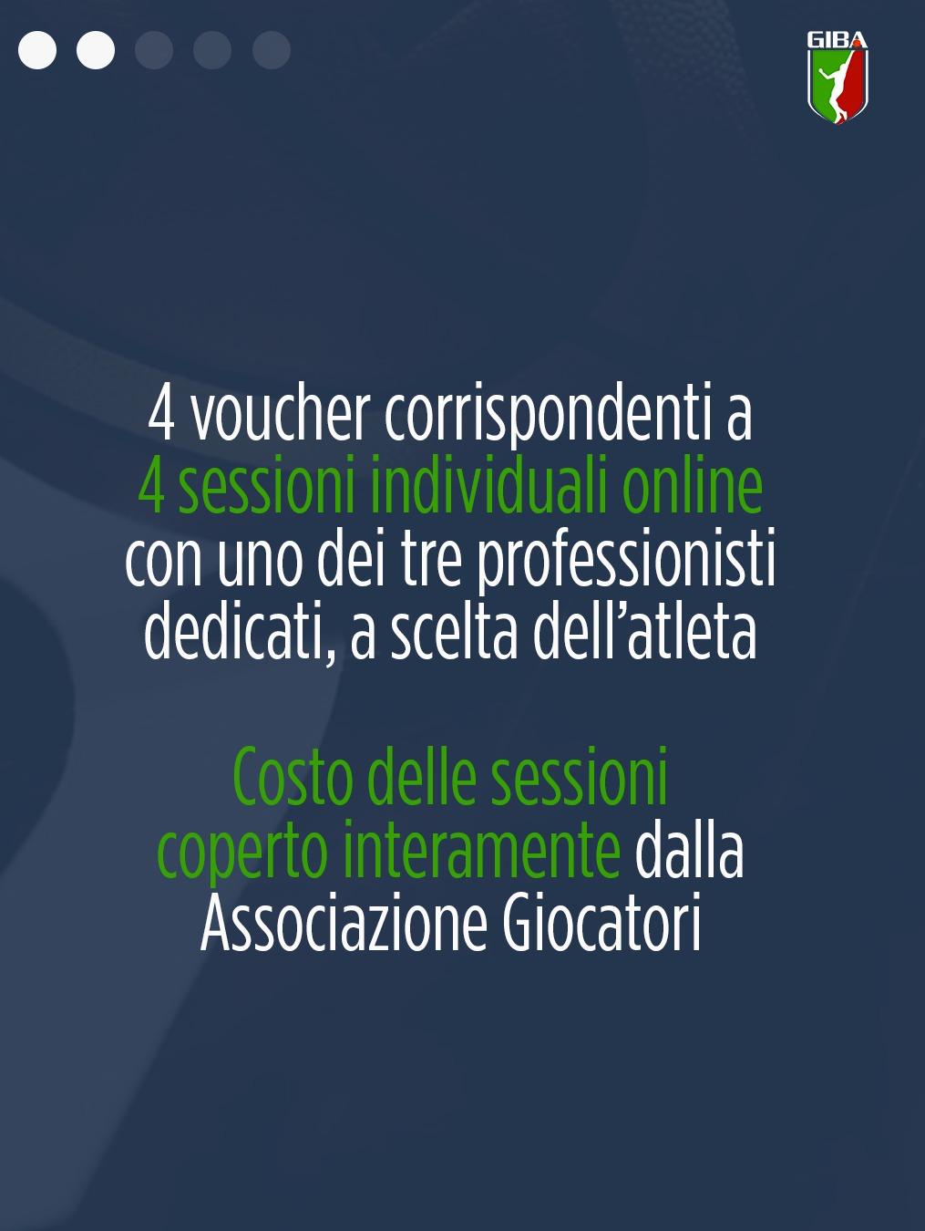 Si può beneficiare di 4 voucher corrispondenti a 4 sessioni individuali online con uno dei tre professionisti dedicati, a scelta dell’atleta. Il costo delle sessioni è coperto interamente dalla Associazione Giocatori.
